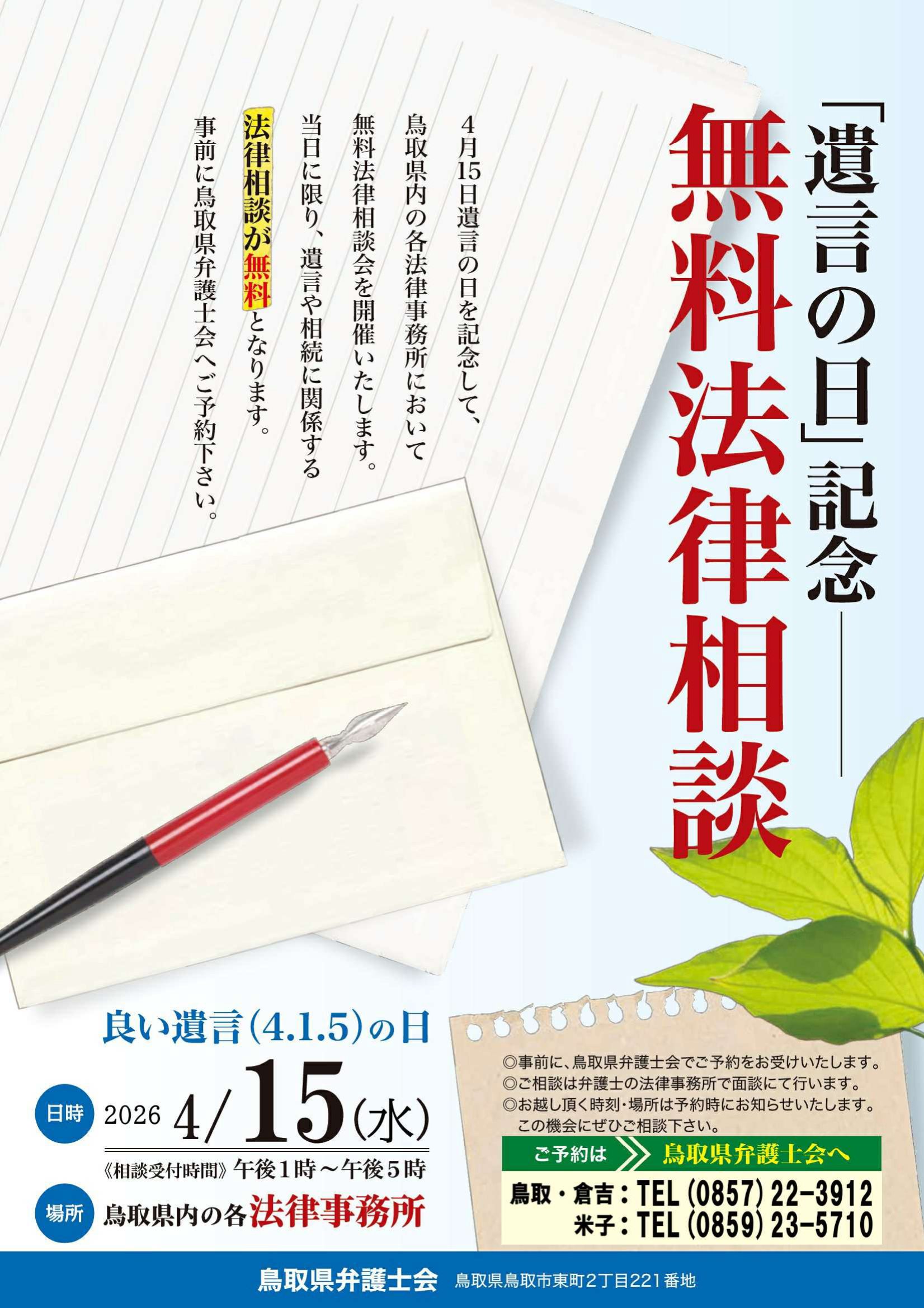 事前に、鳥取県弁護士会でご予約をお受けいたします。